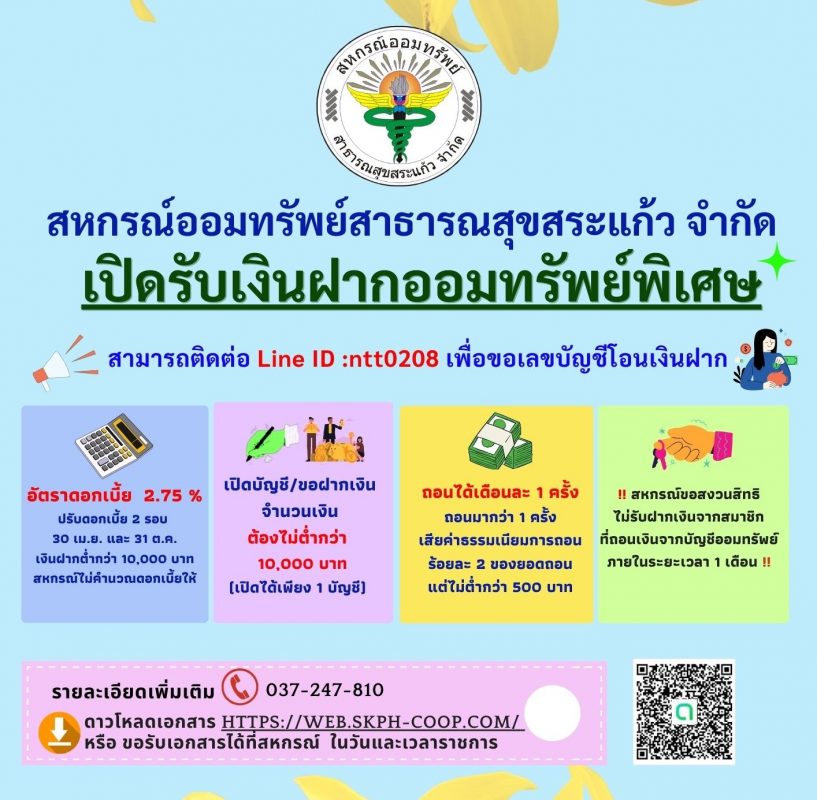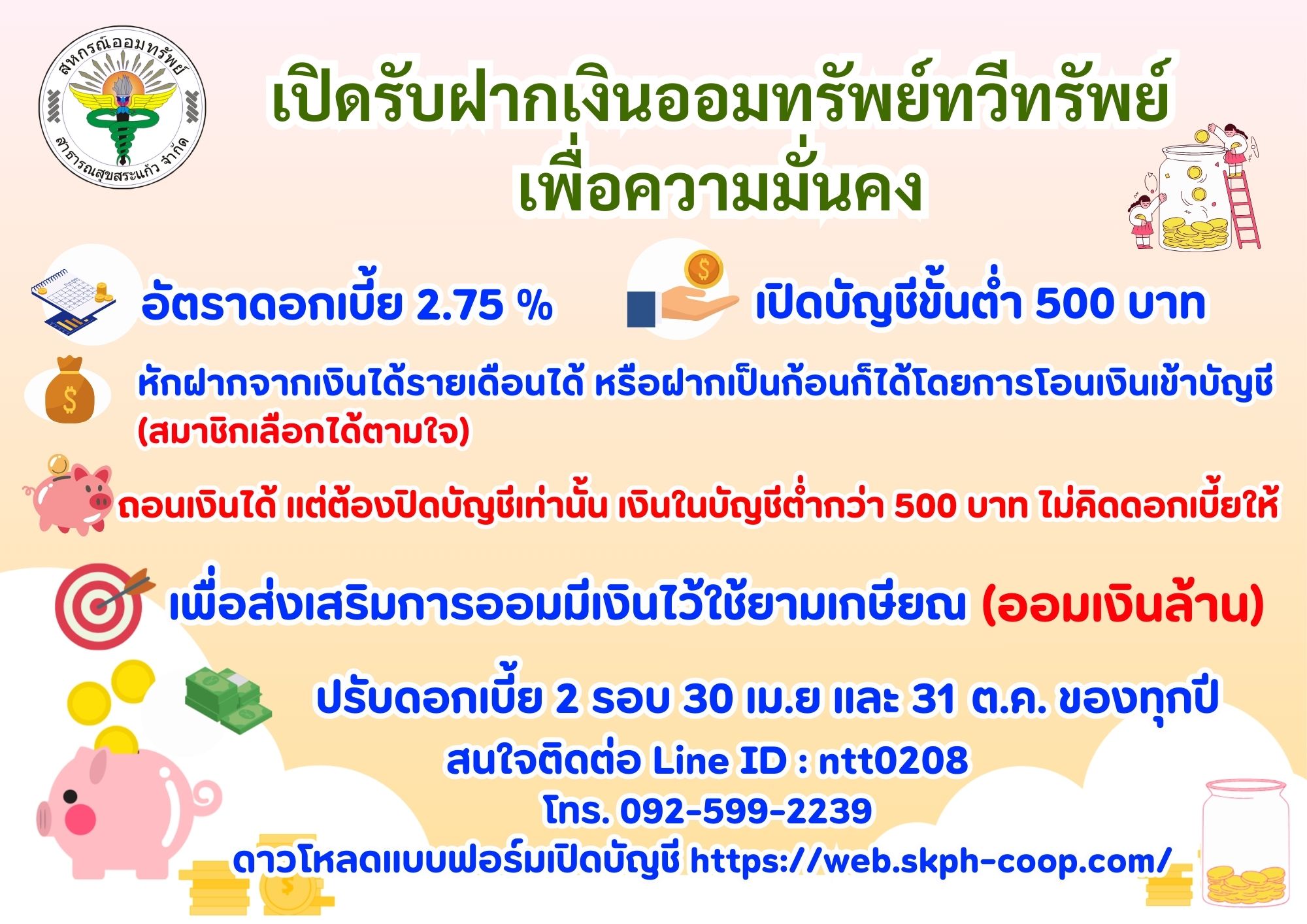 เปิดรับฝากออมทรัพย์ทวีทรัพย์เพื่อความมั่นคง